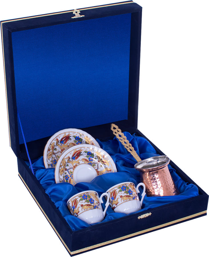 Kadife Kutulu Bakır Cezveli ORNÜrün : Porselen- Güral Porselen 2 Kişilik 5 Parça Kahve Fincan Takımı Kadife Kutulu Bakır Cezveli ORN 764