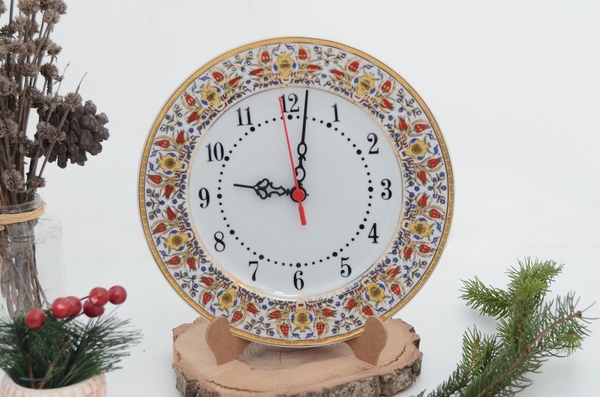 porselen duvar saati el dekorlu yaldızlı